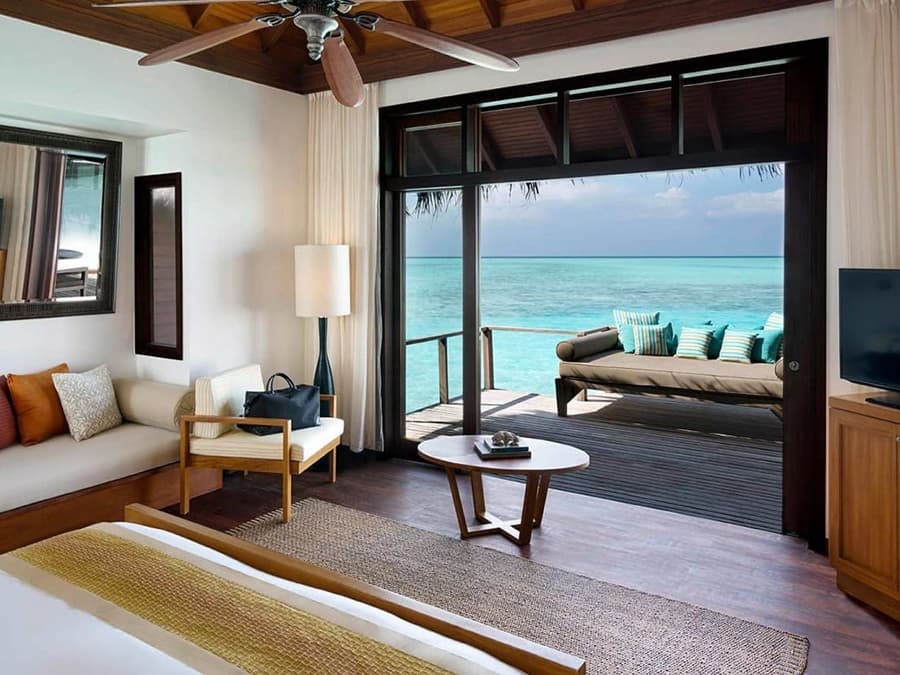 This resort, located in the South Male Atoll, is ideal for romantic retreats and honeymooners. Guests enjoy both space and solitude as the resort is entirely made up of over-water bungalows. Anantara Veli offers a variety of water sports, from waterskiing and parasailing to personalized yacht trips. Cooking workshops, yoga and meditation sessions, and a one-of-a-kind surf school are all available. Guests at this Anantara resort enjoy the benefits of two resorts in one, since a sister hotel is located just across the lake.